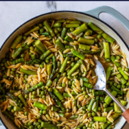 Today, I’m sharing one of my favorties during the Lenten season. Since meat is a no-no for us on Fridays, this Aspargus and Pea Orzo makes an appearance quite often, as well as my Sheet Pan Shrimp Fajitas and my Mahi Mahi Potato and Asparagus Sheet Pan Meal.