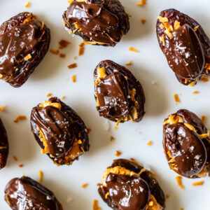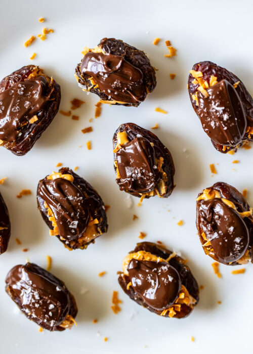 These Chocolate Peanut Butter Coconut Dates are absolutely dreamy! They take no time to make and they’re the perfect little healthy-ish treat.