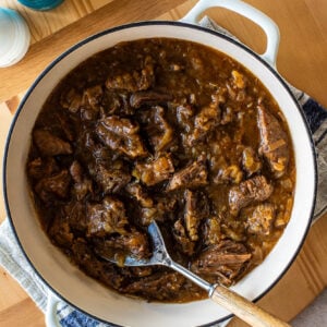 Tom loves this with a side of mashed potatoes, but it would also be delicious with some egg noodles.