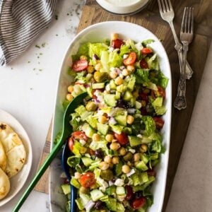This Greek Chickpea Salad with Green Goddess Dressing is a healthy, satisfying meal in a bowl. It’s protein-packed, vegetarian and super easy and flavorful!