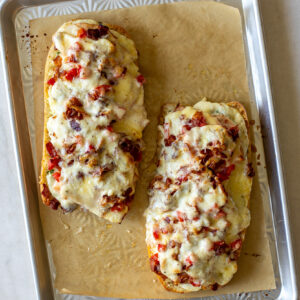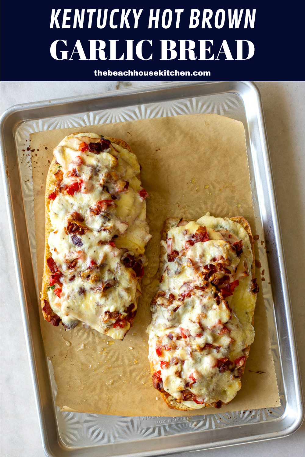 If you’re a fan of the Kentucky Hot Brown, you’re going to love this garlic bread version. It’s like two treats in one.