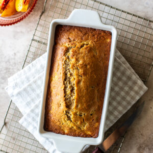 It’s as easy to make as my banana bread recipe, you’re just substituting peaches.