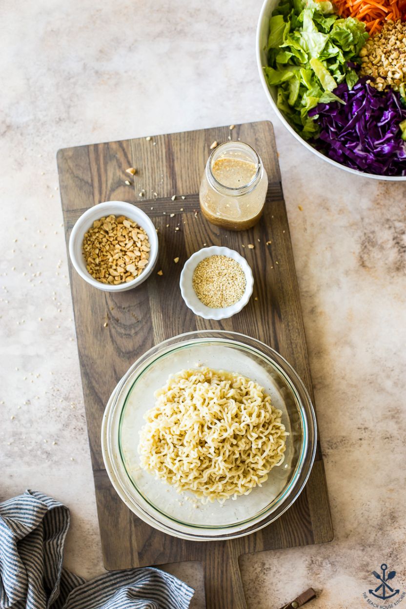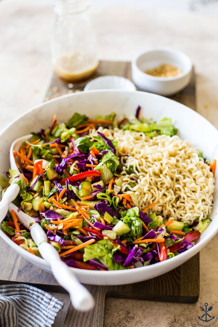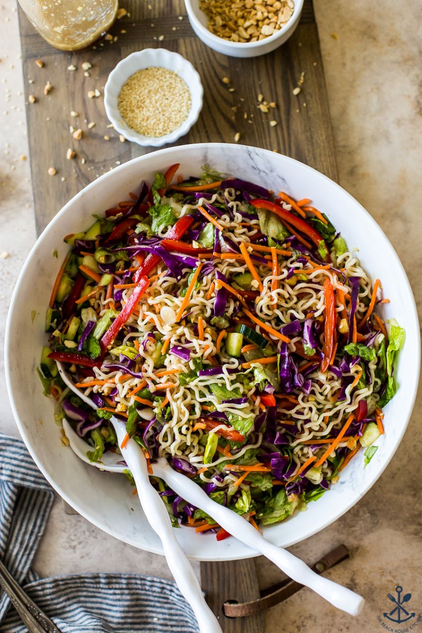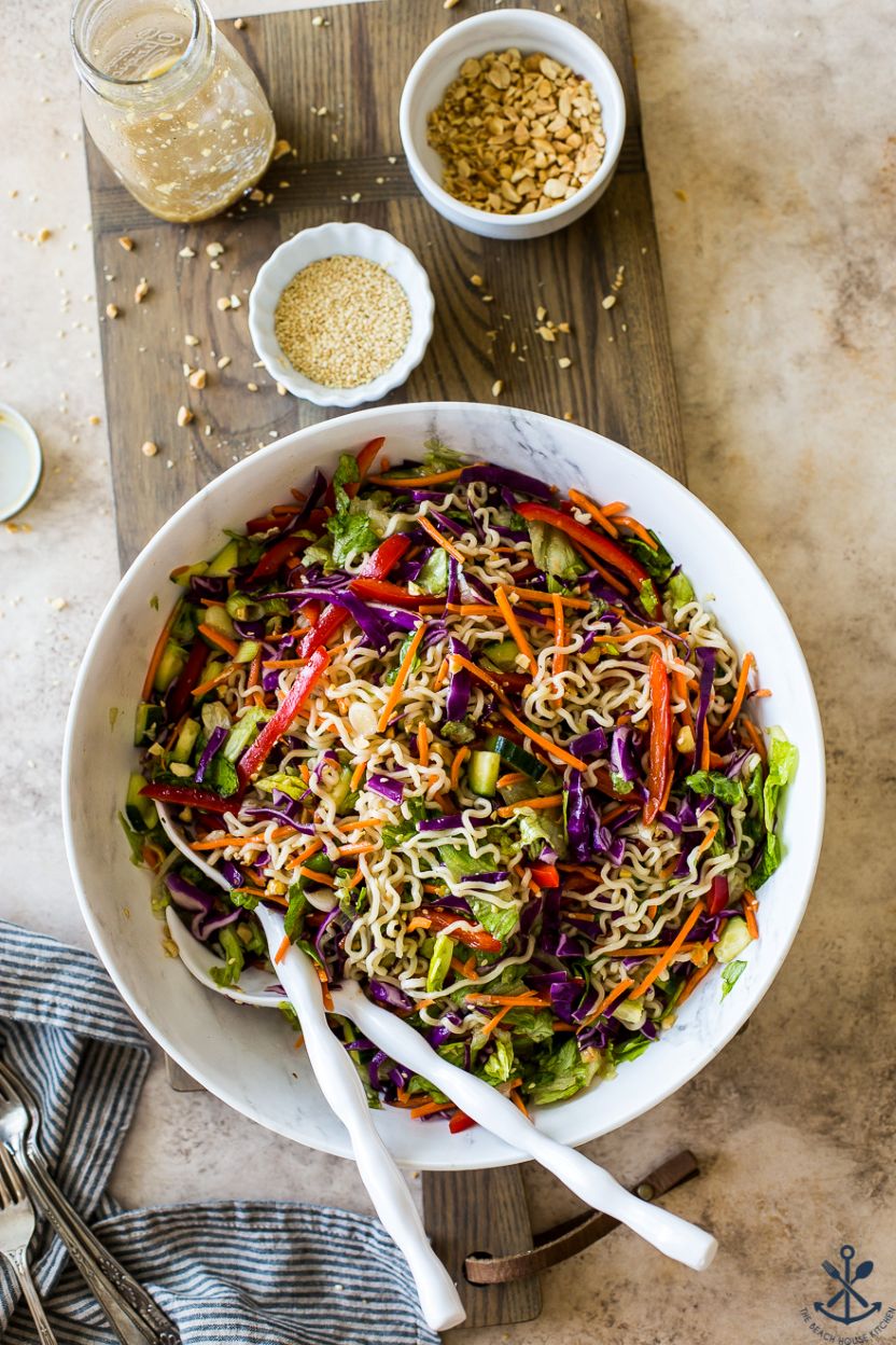 Overhead photo of Ramen Noodle Salad with Honey Sesame Dressing
