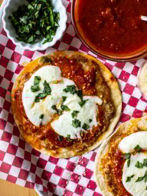 These Chicken Parmesan Smash Tacos are incredibly easy to make with some seasoned ground chicken then topped with marinara sauce, fresh mozzarella and chopped basil! It’s a quick family dinner recipe that never disappoints!