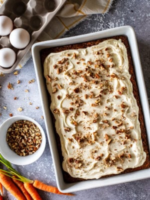 An incredibly moist cake loaded with carrots, pineapple and pecans, this Easy Carrot Cake with Cream Cheese Frosting is always a crowd favorite!