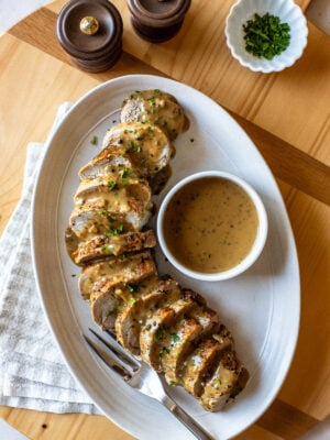 This Pork Tenderloin with Peppercorn Sauce is over-the-top loaded with flavor. The pork is tender and juicy and the sauce?? So good you’ll want to top everything on your plate with it!