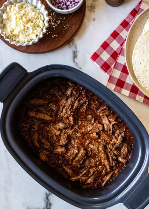 So today, I’m sharing this delicious Slow Cooker Beef Tinga. You know I love my Chicken Tinga here on the blog, so changing it up to beef using a chuck roast seemed like a no-brainer.
