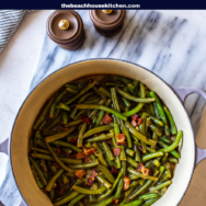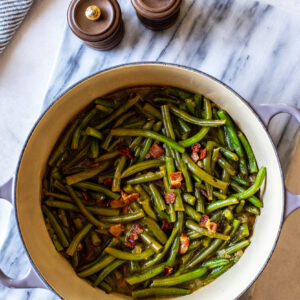 These Southern-Style Green Beans are made with fresh green beans and they’re cooked until they’re soft and tender. Added bacon gives them a delicious smoky flavor. This Southern comfort food side can’t be beat!