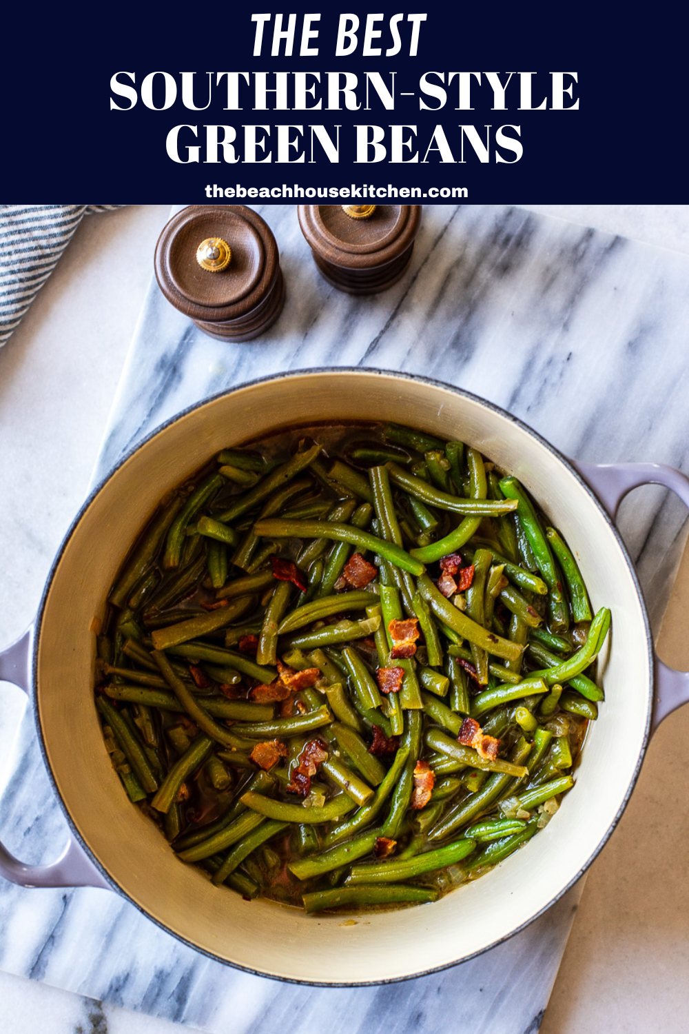 Southern-style green beans differ from northern-style because they’re not meant to be crisp. They’re slow-cooked until they’re silky and super tender.