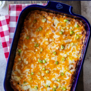 You’ll bake for 25 minutes until the cheese is nice and melted. When you remove it from the oven you’ll top it with some sliced scallions.