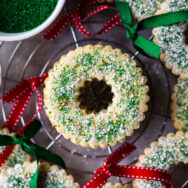 I decided to cut them out into wreaths this season, sprinkle with some green sanding sugar, edible gold stars (my fave) and a dusting of confectioners' sugar to make them look like snow covered wreaths.