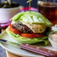 I like to make this recipe super duper healthy by using a lettuce bun, but you could also use regular hamburger buns.