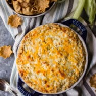This Cheesy Corn Dip with Green Chiles is rich and creamy and perfect for all that beautiful summer corn! So easy to whip up for all your summer parties.