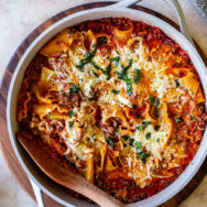 This Easy Skillet Stovetop Lasagna is a weeknight dinner game changer! It's everything you love about lasagna, but one skillet on your stovetop, super simple and no mess!
