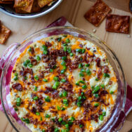 Mix the ingredients together with a rubber spatula until smooth and well combined and then spread this mixture into your pie plate. Sprinkle the mixture with your seasoned panko, the remaining one tablespoon of grated Parmesan cheese, your remaining cheddar cheeses, bacon and jalapeños.Bake the dip for 20 minutes or until just bubbly around the edges. Serve with Pretzel Pita Chips or your favorite cracker.