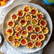 These Mini Heirloom Tomato Pies are the perfect little bites to showcase all those beautiful summer tomatoes from your garden. They're made incredibly easy with some store-bought pie crusts, so they take minutes to prepare! Sure to be a favorite at your next summer party!