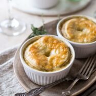 When baking, place your ramekins on a baking sheet lined with parchment paper just in case the pot pies bubble and overflow a smidge.