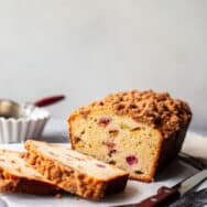 To enjoy this loaf all year long, you can purchase rhubarb now, while it's in season and freeze it. I cut my stalks into about 1-inch sized pieces and freeze them on a large baking sheet. When they're firm, I transfer them to a freezer bag and store for up to one year.