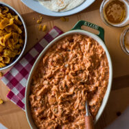 Remove the cooked chicken breasts from the sauce and shred. Before adding the shredded chicken back to your slow cooker you will whisk the sauce until smooth. Serve as a filling to tortillas, atop rice or spiralized veggies.